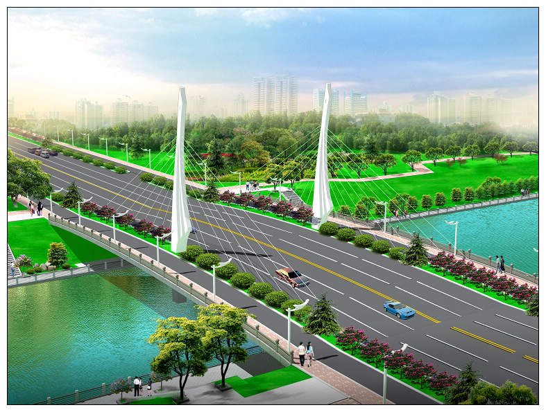 橋面寬度:0.4m(人行道護(hù)欄)+1.5m(人行道)+4m(非機(jī)動(dòng)車道)+0.3m(非機(jī)動(dòng)車道護(hù)欄)+2.04m(綠化隔離帶)+0.5m(機(jī)動(dòng)車道護(hù)欄)+21.6m(機(jī)動(dòng)車道)+0.5m(機(jī)動(dòng)車道護(hù)欄)+2.04m(綠化隔離帶)+0.3m(非機(jī)動(dòng)車道護(hù)欄)+4m(非機(jī)動(dòng)車道)+1.5m(人行道)+0.4m(人行道護(hù)欄),全寬39.08m。