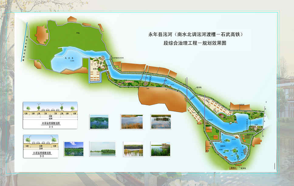 本次設(shè)計(jì)工作中將河道景觀功能和防洪排水功能并舉,重點(diǎn)打造生態(tài)景觀河道。不僅是服從了海河流域防洪規(guī)劃、子牙河流域防洪規(guī)劃、洺河流域防洪規(guī)劃等流域規(guī)劃對(duì)該治理河段防洪要求,并進(jìn)行了深度優(yōu)化,更突出的特點(diǎn)是與永年縣城發(fā)展規(guī)劃、綠地系統(tǒng)規(guī)劃、景觀規(guī)劃、環(huán)境保護(hù)與生態(tài)建設(shè)戰(zhàn)略規(guī)劃有機(jī)融合。河道治理充分運(yùn)用了新材料、新工藝,重視河道生態(tài)景觀建設(shè),采用不同形式的生態(tài)護(hù)岸,包括石籠、塊石、卵石、生態(tài)袋、固土毯等,滯洪補(bǔ)枯、調(diào)節(jié)水位,恢復(fù)河中動(dòng)植物的生長(zhǎng),利用動(dòng)植物自身的功能凈化水體,很好地協(xié)調(diào)了防洪、生態(tài)環(huán)境和景觀的關(guān)系。