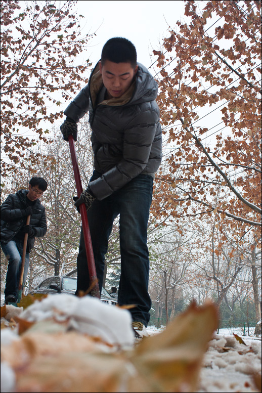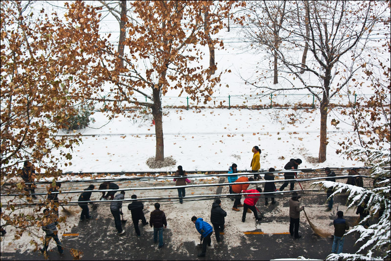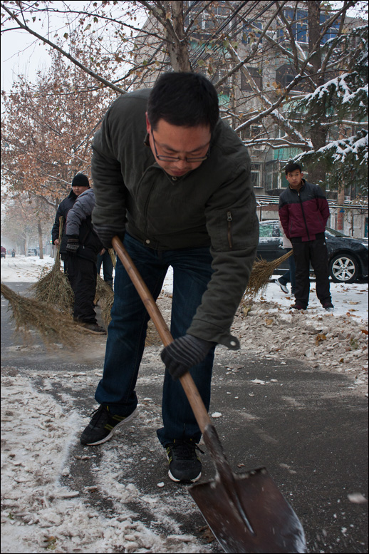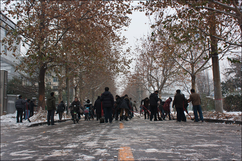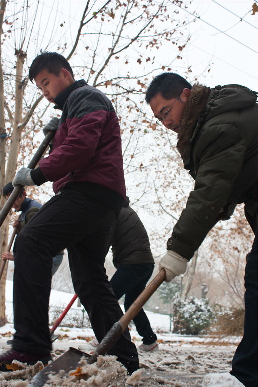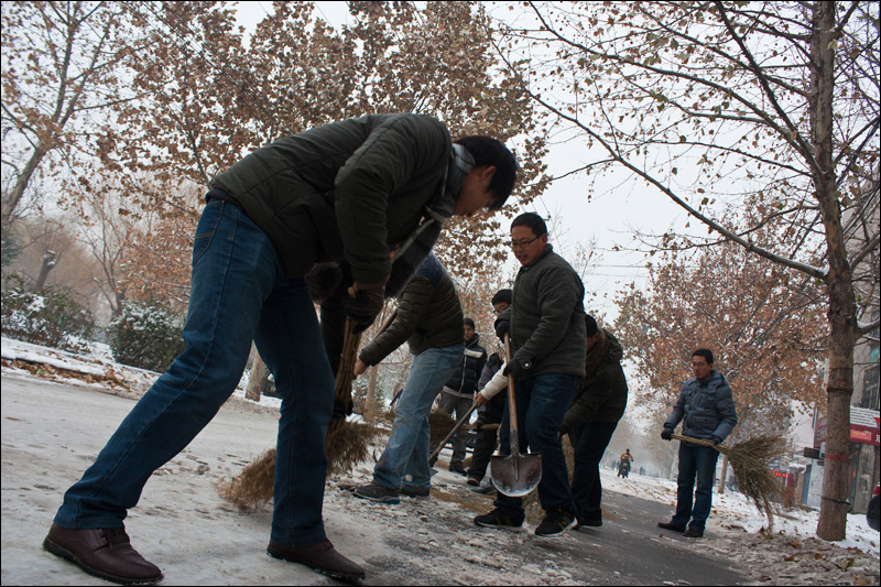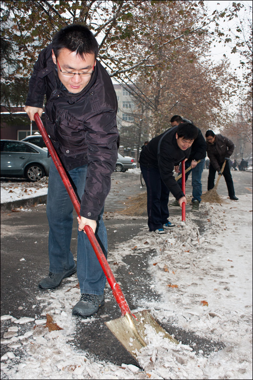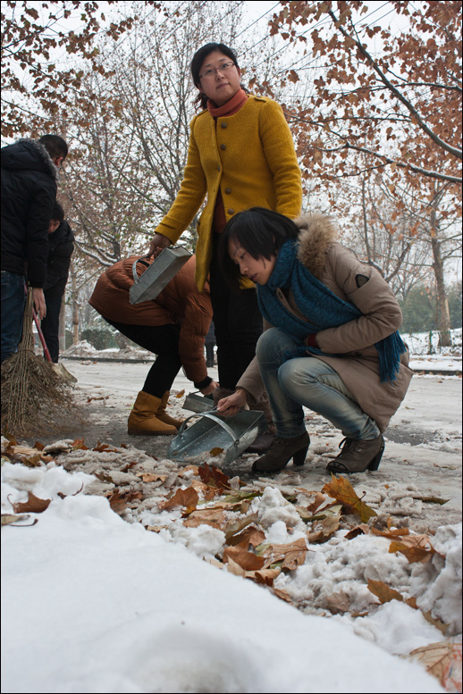 我院職工自發(fā)清掃2012年第一場雪