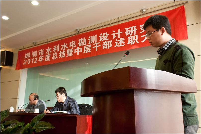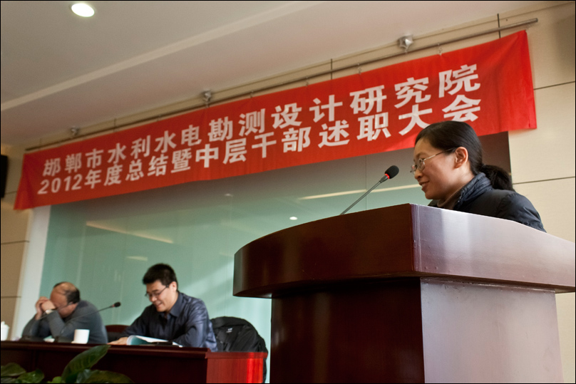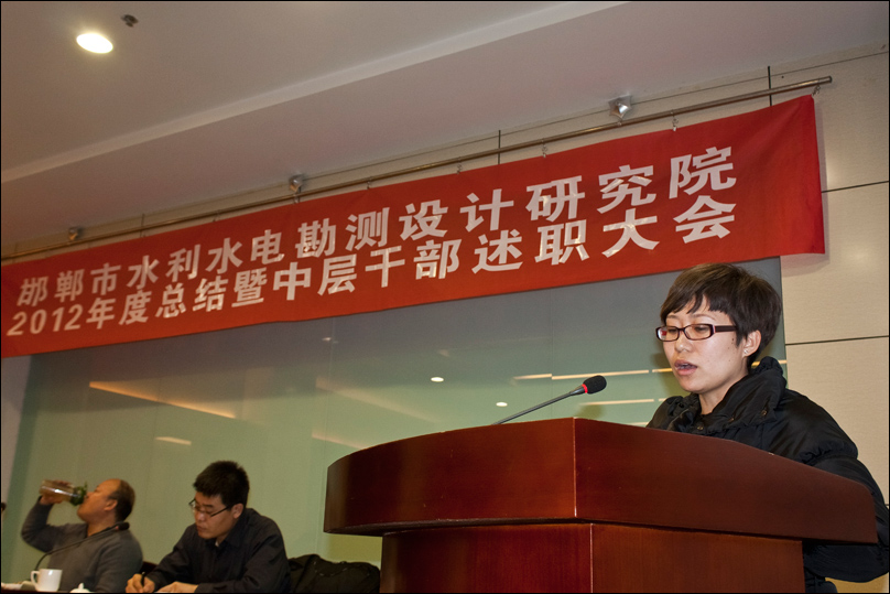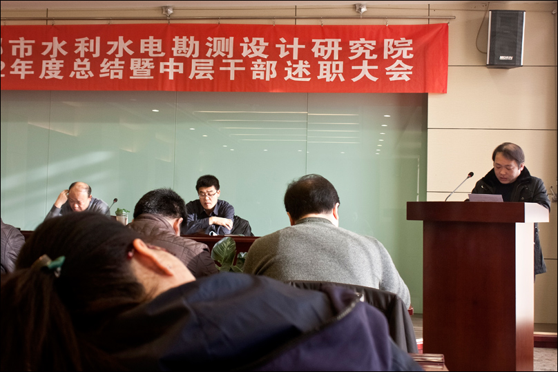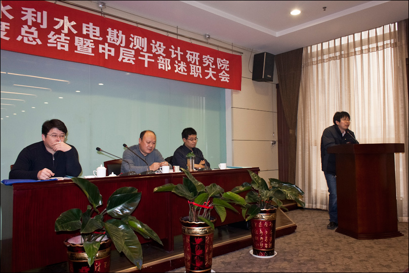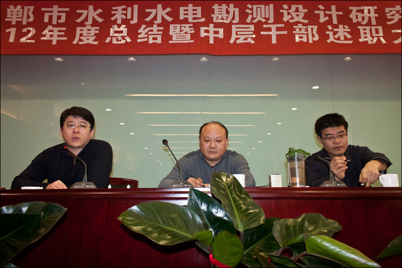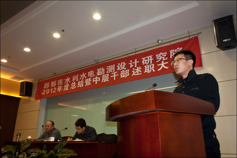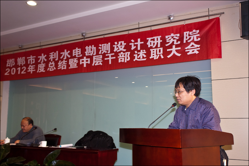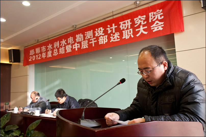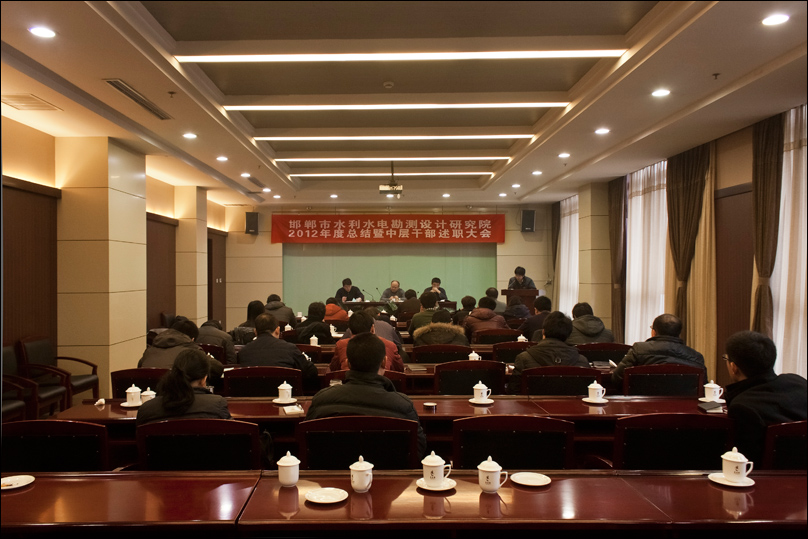 2012年,我們認(rèn)真貫徹落實(shí)局工作會議精神,深入貫徹、落實(shí)科學(xué)發(fā)展觀,我們以黨的“十八大”精神和科學(xué)發(fā)展觀理論重要思想為指導(dǎo),以經(jīng)濟(jì)建設(shè)為中心,圍繞改革創(chuàng)新、持續(xù)發(fā)展兩大主題,積極推進(jìn)各項(xiàng)工作的開展。一年來,各項(xiàng)工作都取得了顯著成績?偨Y(jié)2012,展望2013,2013年1月12日上午,在磁縣嵩景樓賓館二樓會議室,我院召開了2012年度總結(jié)暨中層干部述職大會,院領(lǐng)導(dǎo)班子及各處室副主任以上中高層干部參加了會議。