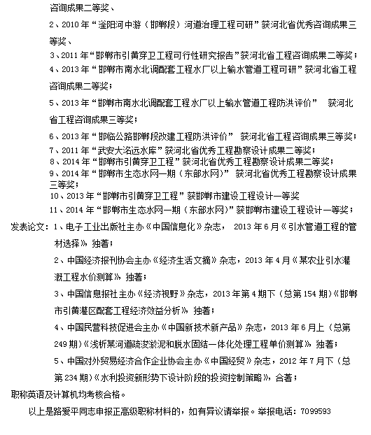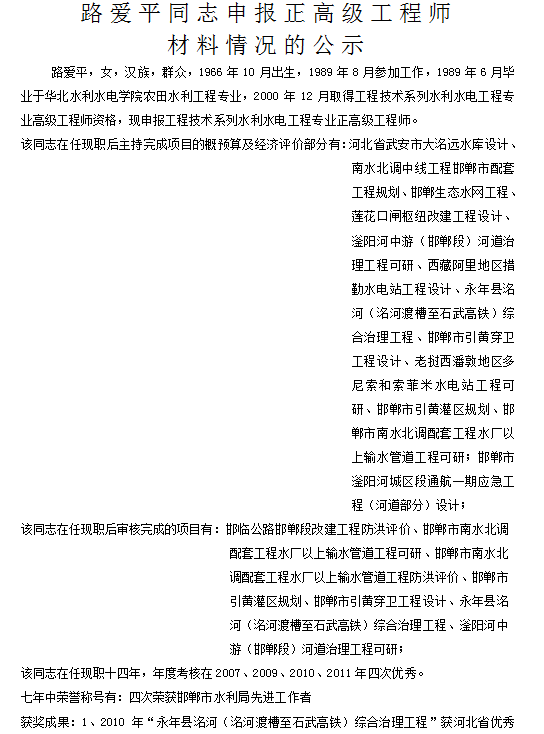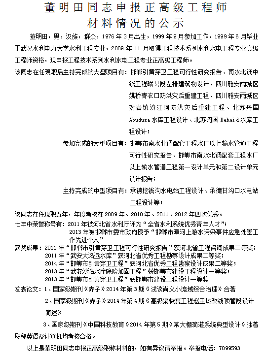 我院申報正高級工程師相關(guān)人員材料情況公示