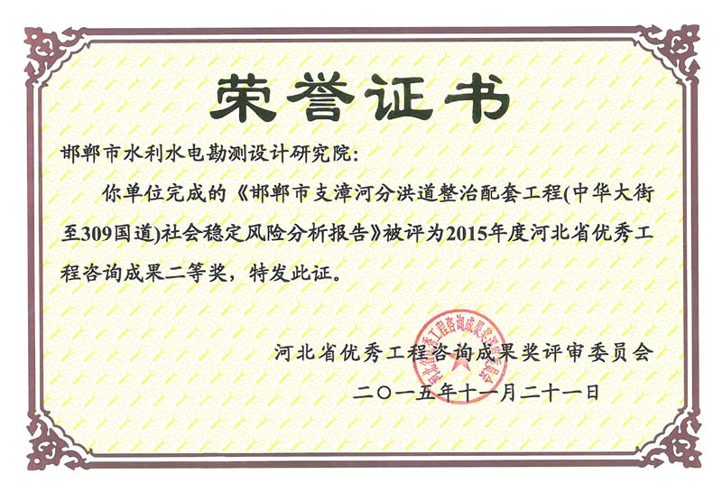 2015年度河北省優(yōu)秀工程咨詢成果二等獎